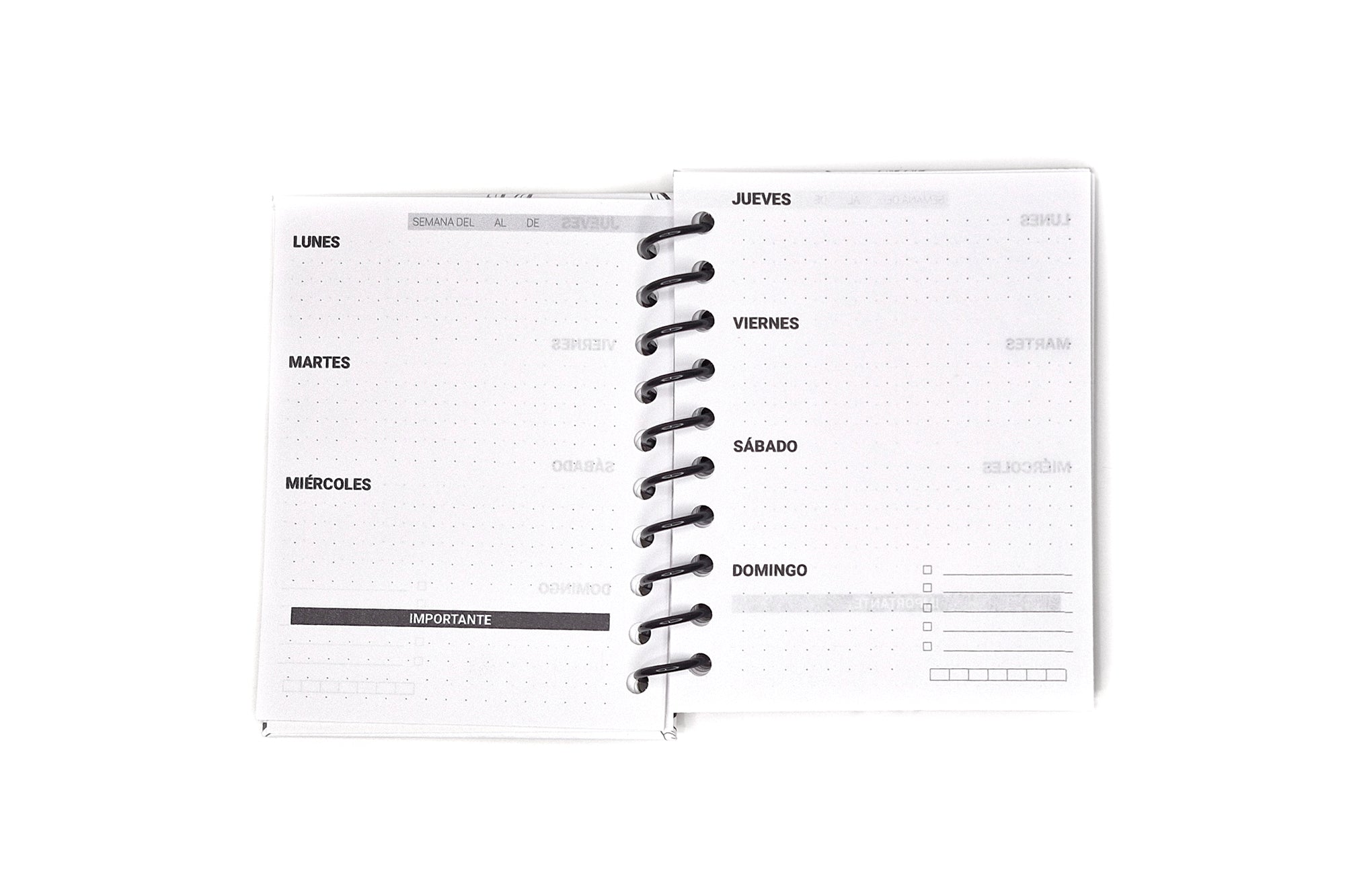 Mini agenda con 82 hojas tamaño 1/4 carta.